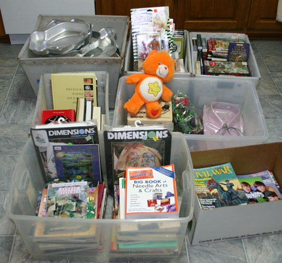 Speaking of the books, many of them are wonderful, practically new, Christian non-fiction and gift books, many with multiple copies. Unfortunately, most are worth only $.01 on Amazon. So, I had this bright idea to list them on eBay. I’ve started running listings as buy one, get one for a friend, all for one price and one shipping charge. It helped beef up my listings total, and maybe will beef up my bottom line ever so slightly. For the rest of them, it’s either donate, or take them to local bookstore for credit. We took five boxes yesterday to the bookstore, and got about $170 credit. Sounds good, but the hitch with this particular store is that you can only use credit for half the purchase price of a book (i.e., book costs $6, but you can only use $3 credit toward it).